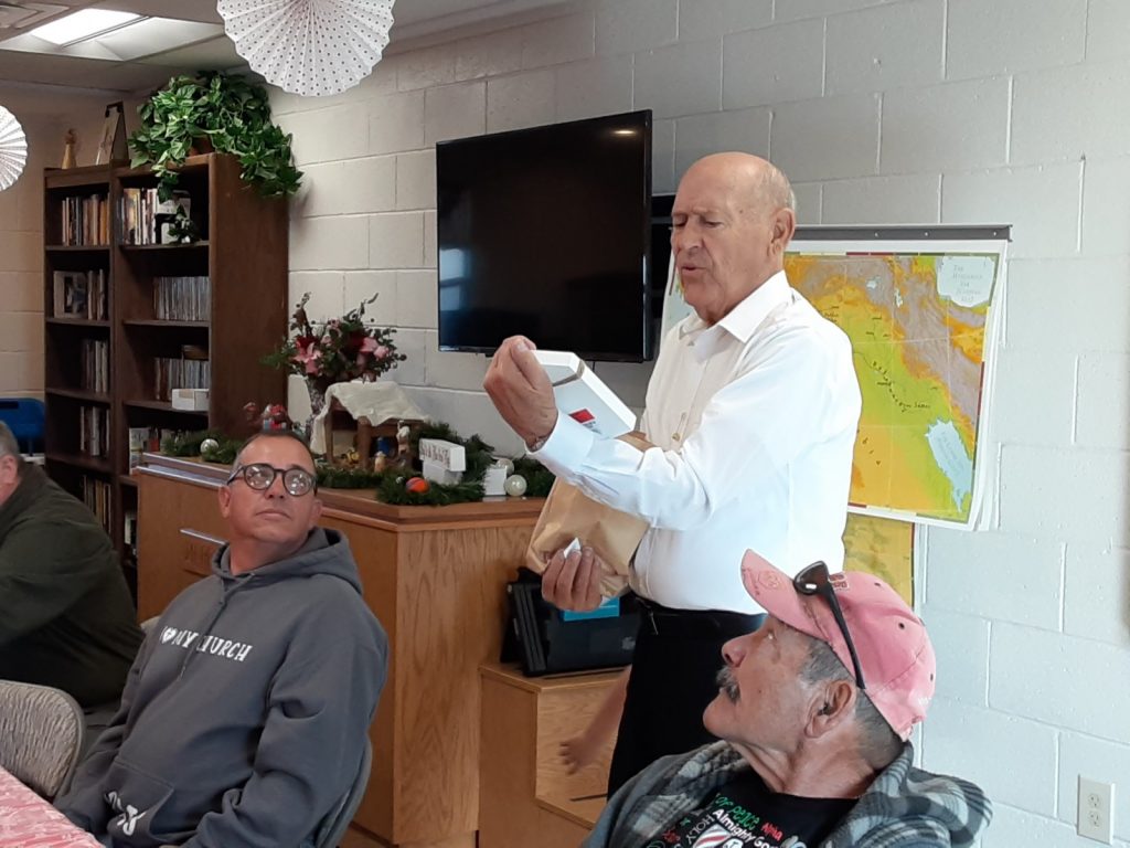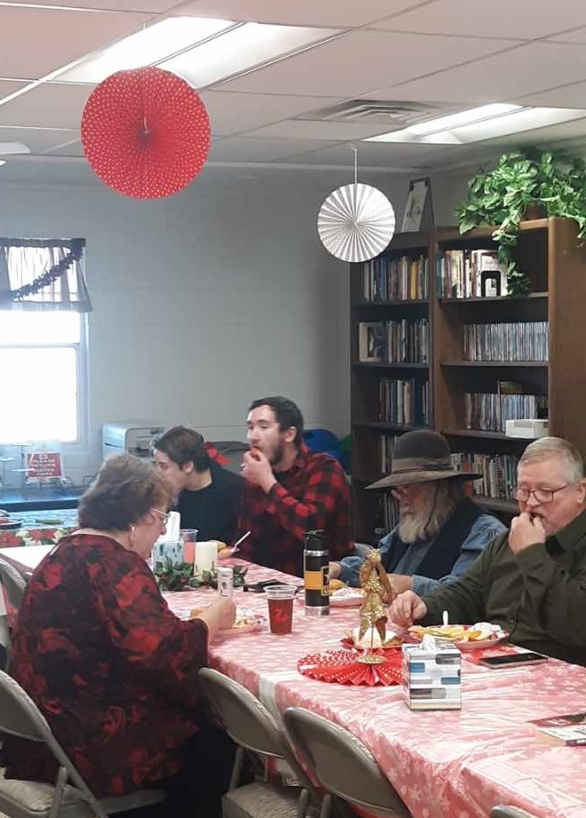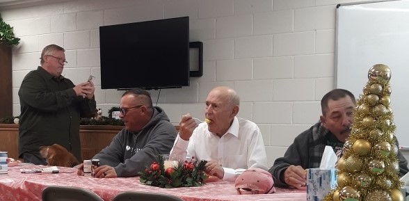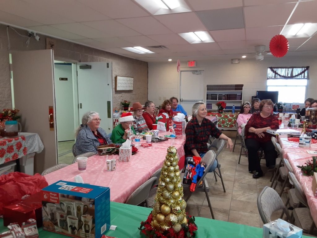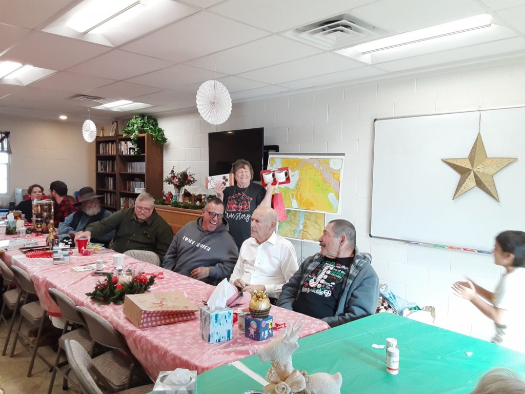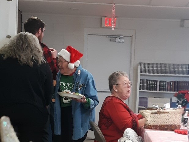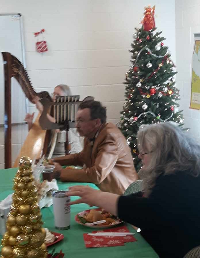 Pulpit Christmas Decorations. Christmas Choir: Carmen, Diane, Peggy, Paula, and Nita. Guenda and Janae in a quiet moment before we eat. Walter, Virginia, and Dottie Naaman, Pastor Ted, Fred, and Anna as she open's Fred's gift during Christmas Greed. Part of our Christmas decorations. Ready for the food. Even with surgery, Nita was able to get her gift in Christmas Greed. Getting ready for Christmas Greed. Large wreath out front. One of our Christmas flags. Dottie, Diane, and Ed. Guenda gets her Christmas Greed gift. Albert gets his Christmas Greed gift. Diane singing a Christmas Special. Christmas Carolers: Perry, Peggy, Ron, Gail, Peggy, Pastor Ted, Mary, and Diane. Carolers in for some hot chocolate: Peggy, Moira, and Perry. More carolers in for hot chocolate: Mary, Nita, and Pastor Ted. Large nativity scene out front. Christmas Desserts. Christmas attendees either in line or eating. Vi picked her gift in Christmas Greed. PA, Albert, and Steve, enjoy our 2021 Christmas Luncheon. Darby gives Levi a taste of our 2021 Christmas Food as PA and Jeanne peruse something else. Diane is seated with her food and Priscilla will join her shortly (2021). Bonnie and others are joining the line for food (2021). Julie is also joining the line (2021). Julie and Richard share our 2021 Chritmas Luncheon with Liam and Jasmine. Looks like our 2021 Christmas Luncheon is a "big hit" with those who attended. Rocky and Glenda enjoy the harp music (2021). This side of the table is enjoying our 2021 Christmas Luncheon. This side of the table also enjoys 2021 Christmas Luncheon. Glenda and Gary enjoy the food and fun at our 2021 Christmas Luncheon. Guenda get a second chance due to 2021 "Christmas Greed. Glenda and Gary ("BowMan") enjoying Christmas 2021. Damian chose a Christmas gift any young boy would like (2021). Guenda opens her 2021 "Christmas Greed" Gift. Looks like everyone is ready to eat (Christmas 2021). Another great photo of Christmas 2021. Damian gets a "harp lesson" in Christmas 2021. Liam with his 2021 "Christmas Greed" gift Darby with his 2021 "Christmas Greed" gift. Guenda with her 2021 "Christmas Greed" gift. Steve with his 2021 "Christmas Greed" gift. The "guys" in a playful 2021 Christmas mood. Richard with his 2021 "Christmas Greed" gift. Jasmine with her 2021 "Christmas Greed" gift. Bonnie with her 2021 "Christmas Greed" gift. Diane with her 2021 "Christmas Greed" gift Jeanne with her 2021 "Christmas Greed" gift. Carmen with her 2021 "Christmas Greed" gift. Looks like this group is ready to play Christmas Greed (2021). Priscilla with her 2021 "Christmas Greed" gift. Nita with her 2021 "Christmas Greed" gift. Something is funny to this group (Christmas 2021). Albert with his 2021 "Christmas Greed" gift. Watching someone choose their 2021 "Christmas Greed" gift. PA with his 2021 "Christmas Greed" gift. Glenda with her 2021 "Christmas Greed" gift. Shirley with her 2021 "Christmas Greed" gift choice. Damian's "EXTRA" gift for helping Cathy Jo with 2021 Christmas Greed.