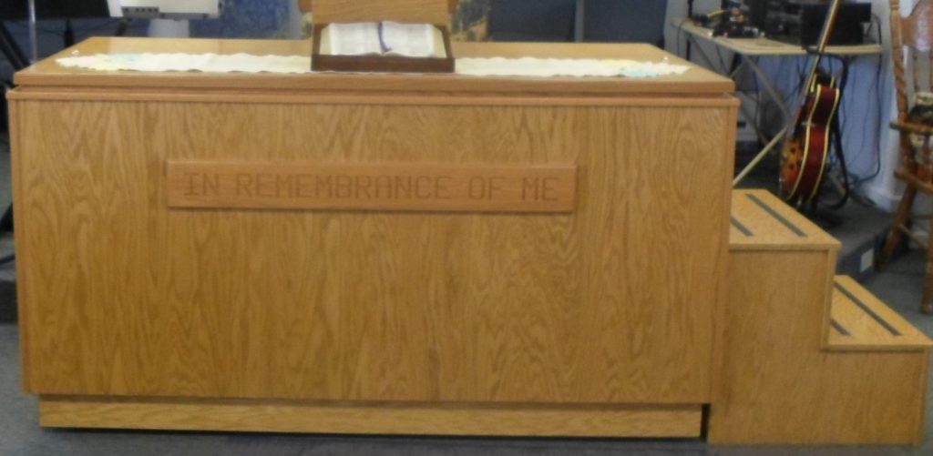 We are blessed to have an excellent Library. Our collection includes, Books, DVD's, Audio Books, Pamphlets, and Bible Studies with accompanying DVD's. Our beautiful, and portable, baptistry can be set up to accommodate any baptism when necessary. Congregational laying-on hands for our Elders and Deacons. Our piano player, Julie Morrow. Pulpit in Church Sanctuary. Our Choir Direcor, Glenda, leading singing. I see these three are at it again! Steve and Nita. Naaman and Anna. Ron and Susan. Cathy Jo and Albert. Dr. Scott and Mary. Levi and Darby. Shirley and Rick. Construction of the building continues. Is that Steve? Inside the new edition. Steve and Toby, workers extraordinaire. Carmen. Walter and Virginia. Dottie. Materials for the new edition braves a winter snow. Take up and Read. New shed going up. Materials for the new edition now in the sunshine. Travis and Deanne . Bob and Kate. Bret and Deanna. Charlie and Vi. Ellis and Andrea. Perry and Peggy. Diane and Pastor Ted discuss music. Patti. Alan and Karen. Diane ready to sing a special. Tolle Lege Class. Keith and Peggy. Kurt, Pastor Ted, and Penny. Pastor Ted, Bill, and Pam. Debra and Dave. Groundbreaking for the new addition to our church. Tom Paul and Carol. Bill and Paula. Deacon PA and Jeanne Vicario Carmen and Sandy. Rocky Morrow after sharing his "Personal Testimony" of thankfulness regarding God's Grace of Salvation.