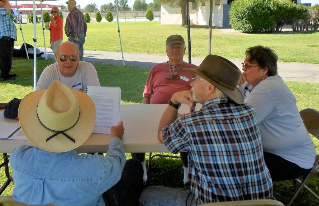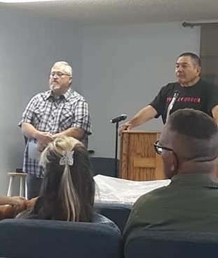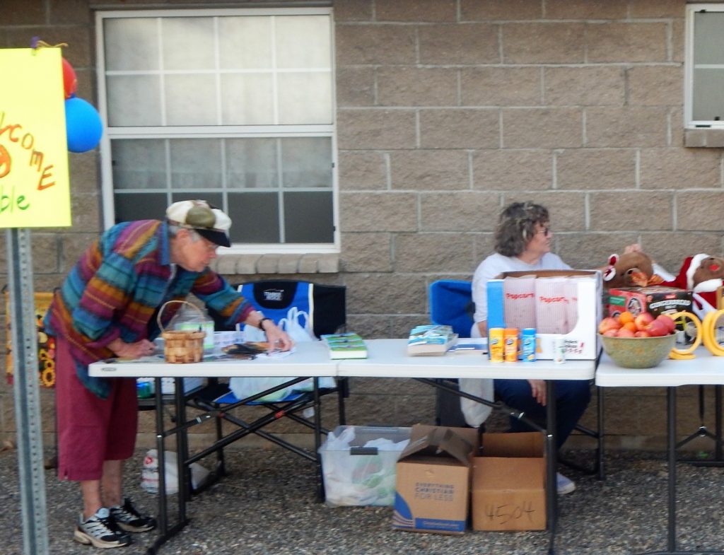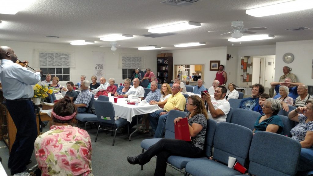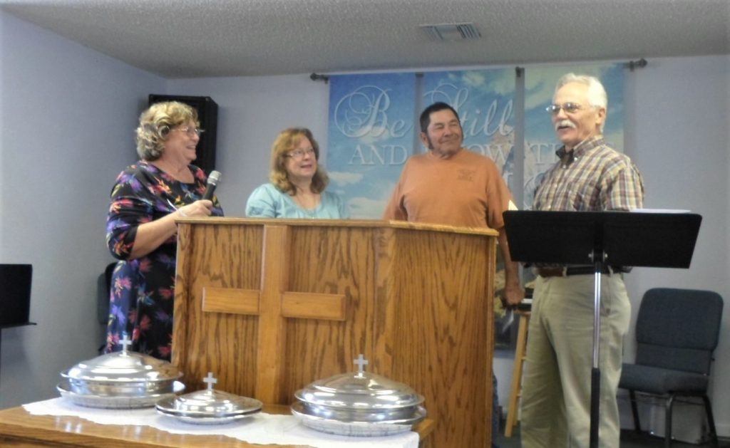 Setting up our area at the Cochise Baptist Association Picnic. The sign into the CBA Annual Picnic. Orlondo Moss, at the Fellowship Rally, discussing why he loves playing the violin. Victoria Sky playing her accordian at the Fellowship Rally. The Arnold's, part of the Road Clean-up Crew! The Koester's, also a part of the Road Clean-up Crew. Deaconess Ordination: Front row, left to right: Gail, Priscilla, Nita; Back row, left to right: Cathy Jo, Lead Deacon, Steve Faccio, and Diane Arnold. Pastor's Appreciation: Nita, Peggy, Steve, and Pastor Ted. Chilling at the picnic: Back to front: Albert, Keith, Nita, Pastor Ted, and Dallas. Fellowship Rally attendees. Ordination of Deacon Darby Webster. After their ordination, our new Deacon, Steve; and new Elders, Tom Paul and Albert, with Pastor Ted. Baptisim of Darby Webster. Q and A for the Candidates for Elders and Deacon. Left to Right: Steve, Albert, Tom Paul, and Pastor Ted facilitating. Movie Night. Easter Luncheon set up in unfinished edition. Getting ready to watch "Woodlawn" on Movie Night. Food and folks at Easter Luncheon. More food and folks. Almost ready to hear Pastor Ted preach on Easter Sunday,. Harvest Festival: Priscilla and Nita. Steve grilling burgers for Harvest Festival. Our new Elder, Steve Faccio. Dedication of Priscilla Dutcher's Home. Guenda Spafford speaking during her ordination as Deaconess.